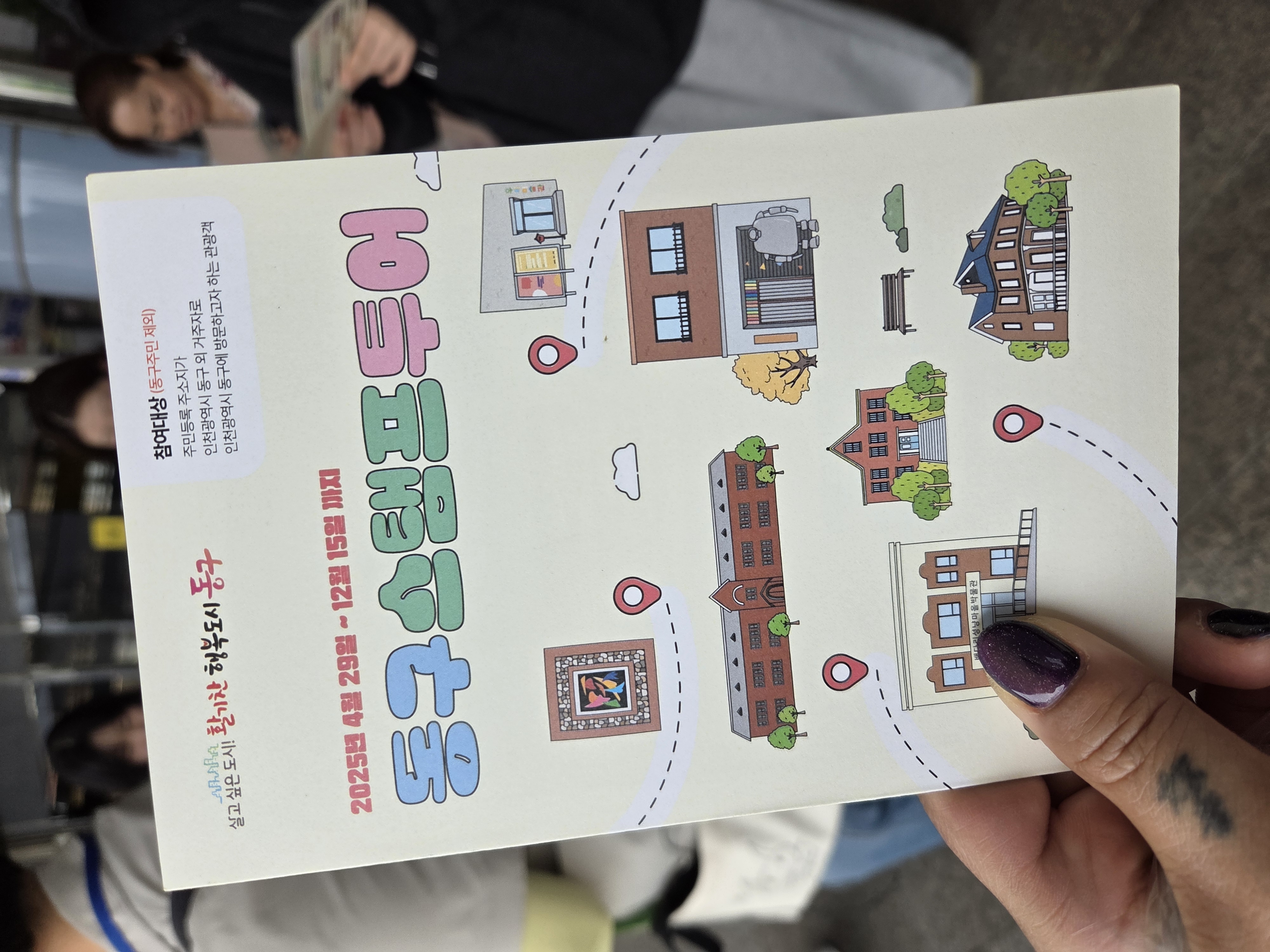 오늘은 도서부동아리가 있는 날! 인천민주로드에서 해설사 분께서 도움을 주셨다. 동구스탬프 투어도 함께 진행해서 1석 2조.